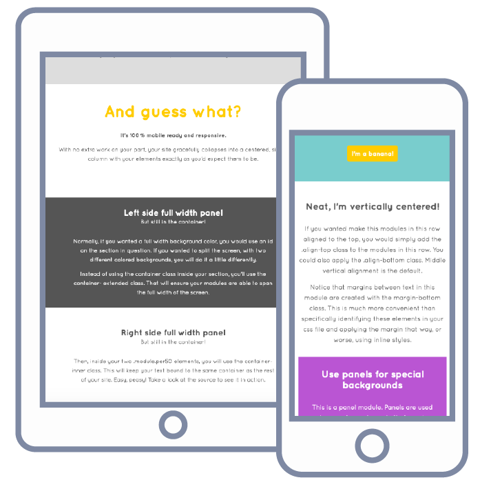 By structuring your HTML with the basic building blocks (section, container, module), it's extra simple to quickly build gridded layouts. Rapidly stylize your site with simple stock classes to apply font sizes, weights, and decoration, width, alignments, padding, and margin.